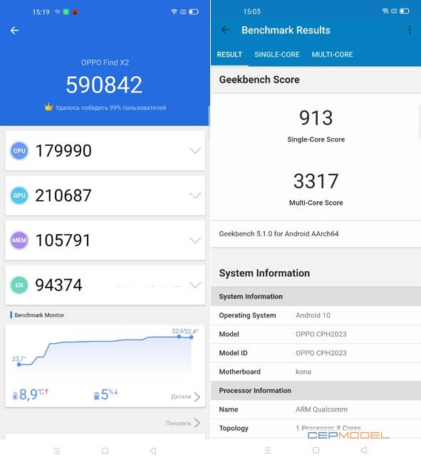 Find X2 donanım söz konusu olduğunda 2020 için ciddi bir amiral gemisi. OPPO Find X2 şu anda en iyi Qualcomm Snapdragon 865 platformunu kullanıyor: 7 nm, 8 Kümesi olan 8 Kryo 585 çekirdeği var. 2,84 GHz’e kadar maksimum saat frekansına sahip bir çekirdek, 2,42 GHz’e kadar saat frekansına sahip üç çekirdek ve 1,8 GHz’e kadar saat frekansına sahip 4 çekirdek bulunuyor. Grafikler için Adreno 650 yer alıyor.